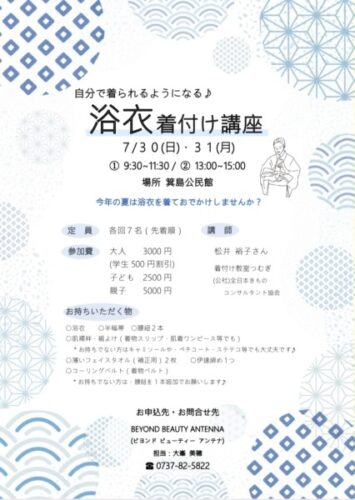 浴衣 着付け講座 開催致します